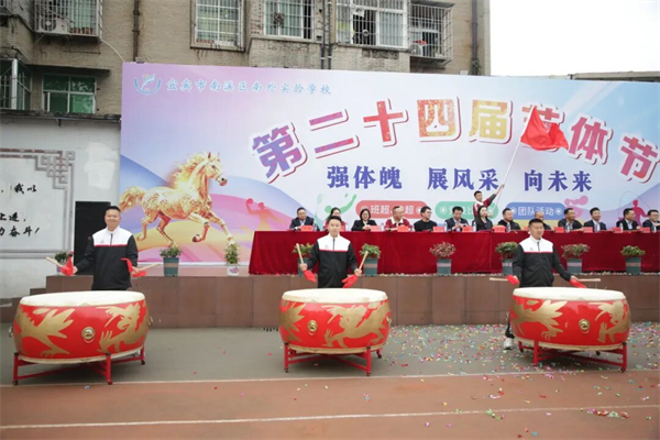 清晨,激昂的《运动员进行曲》响彻运动场,南外实验学校第二十四届艺体节开幕式正式拉开帷幕。鼓乐队以铿锵鼓点点燃全场,彩旗队如流动的彩练迎风招展,教师队伍身着统一服装精神抖擞。