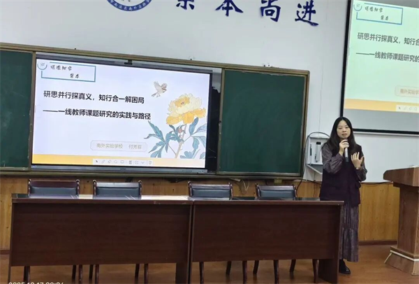 “研思并行探真义,知行合一解困局”,在一线教师课题研究的实践与路径的讲座中,付芳菲老师从如何选题、如何申报、如何开题、如何中期、如何结题等五方面入手,通过研究,教师能从“经验型”逐渐转变为“研究型”,提升教学能力和专业素养,切实解决教学难题,让学生受益。