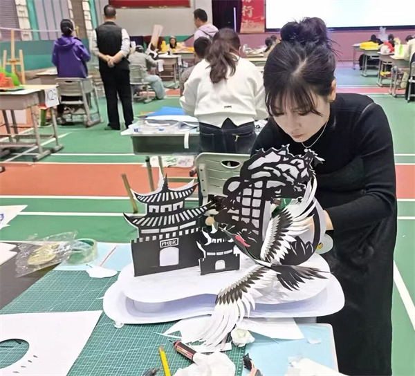 在纸艺创作的赛场,平凡的纸张被赋予了全新的生命。教师们通过剪、折、刻、卷、粘等手法,将一张张平面纸张转化为构思精巧、形态各异的立体作品。这一环节极大地激发了教师们的空间想象力与创造性思维,展现了化平凡为神奇的艺术魅力。