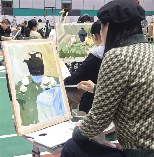 一方静室,数尺画布,一场与色彩的灵魂对话在此悄然展开。教师们围坐在精心布置的静物前,画架林立,画笔轻握。地面上,古朴陶罐与新鲜果物错落有致,织物褶皱间流淌着温柔光影,每一处细节都在诉说着静穆之美。教师们以画笔解读光影的密码,用色彩重构物象的灵魂。在静物与画布之间,他们搭建起一座通往美学的桥梁,让平凡的物象升华为艺术的永恒。