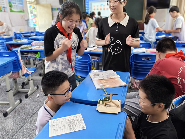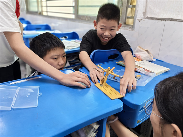 比赛中状况百出,有的竹节人刚上场就散了架;有的打着打着成了“独臂大侠”;有的因为比例不协调无法站立。但这些小意外反而增添了乐趣,同学们并不气恼,有的重新组装,有的借同学的继续玩,教室里洋溢着欢声笑语。