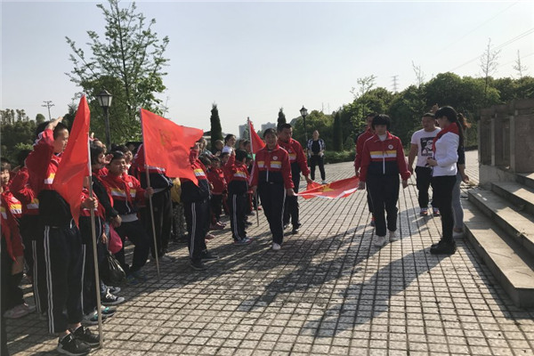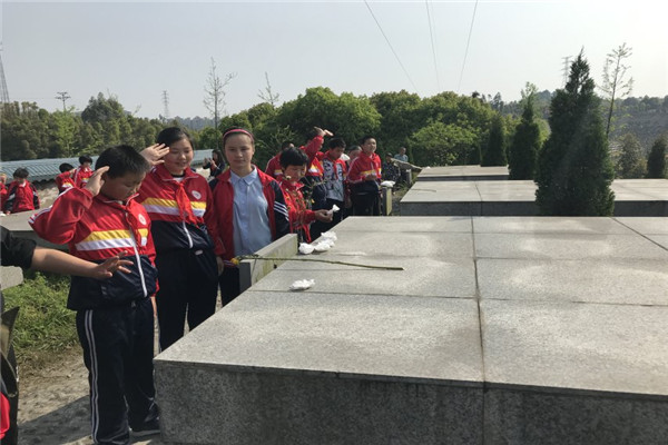 祭扫活动在庄严的国歌声中开始。少先队出旗,随后,教师代表向烈士敬献了花圈。在肃穆的哀乐中,全体师生向烈士们默哀三分钟,以表哀思。钟校长向学生们讲述了我们宜宾的烈士:抗日英雄赵一曼的英雄事迹,对学生进行了爱国主义教育。之后,大队辅导员李敏老师组织进行少先队新队员入队仪式。在烈士墓前,所有少先队员跟着大队辅导员庄严宣誓:时刻准备着为共产主义事业奋斗。全校师生列队去烈士墓前敬献上亲手制作的小白花,表达对烈士的怀念。最后参观了革命烈士纪念馆,聆听老师们介绍革命烈士的英雄事迹,缅怀先烈们的丰功伟绩,表达哀思。