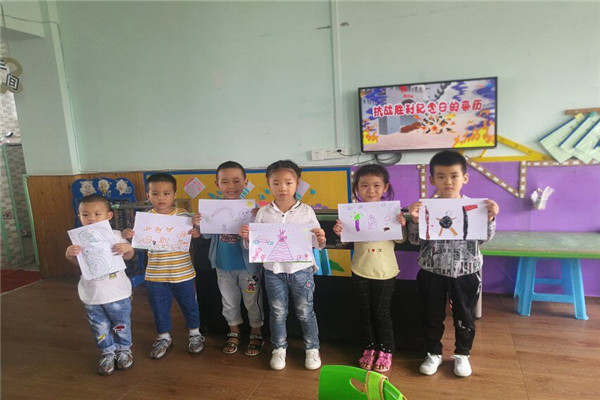 从2014年开始,每年9月3日,都是中国抗战胜利纪念日。江安县迎安镇中心幼儿园在这个特别的日子里对孩子们开展了爱国主义教育,以组织孩子观看精彩的阅兵式、绘制五星红旗,学习我国的几个世界之最、欣赏赞美中国的诗歌等形式开展活动。