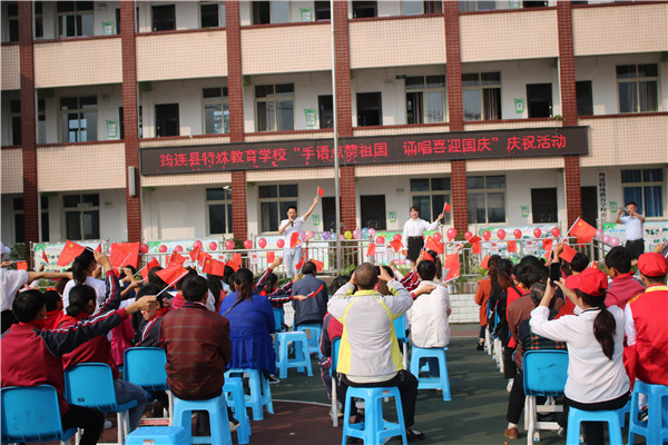 为庆祝新中国成立70周年,筠连县特殊教育学校于9月28日举行了“手语点赞祖国 诵唱喜迎国庆”庆祝活动,全校师生和学生家长共同参加了此次活动。