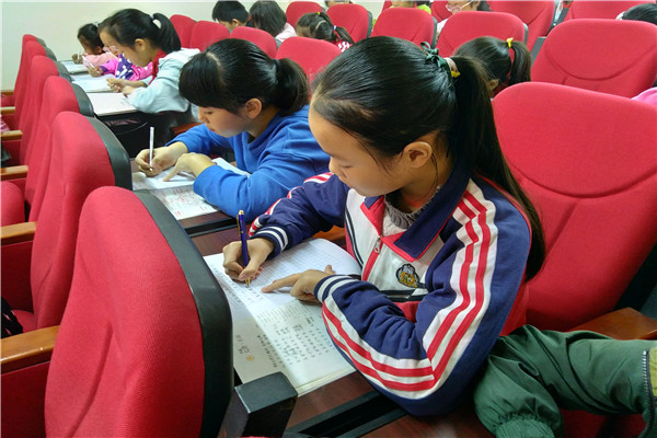 比赛现场秩序井然,同学们聚精会神认真书写。