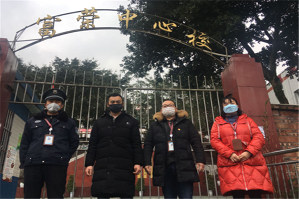学校在疫情防控应对方面提出了四到位:一是组织、宣传到位。学校及时召开班子会议,组织学习了中省市县的文件,成立富荣中心校新型肺炎防控工作领导小组,落实各个部门防控责任。学校利用LED屏实施24小时滚动宣传,班主任教师通过学生家长QQ微信群对家长学生进行疫情知识宣传,对学生实施“生命教育”。