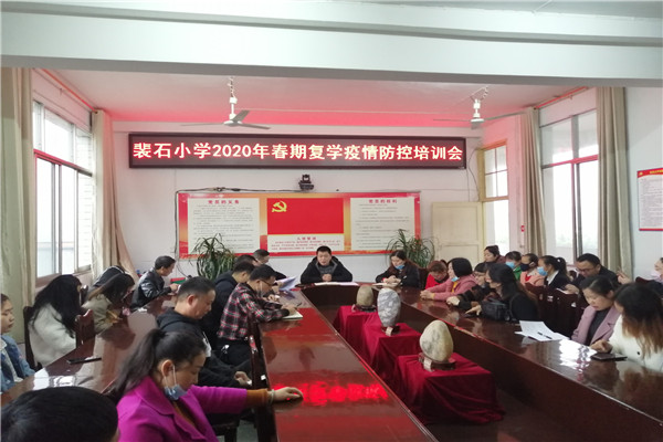 会上,肖玉明传达了区教体局关于统筹疫情防控和复学工作会议精神,组织学习了《裴石小学新冠肺炎疫情应急处置预案》等相关文件。