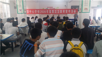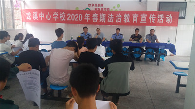 为进一步增强学生的法治意识和遵纪守法的自觉性,做一个知法、懂法、守法的合格学生。6月10日,屏山县龙溪中心学校邀请龙华镇政府安办副主任童明林、派出所警官刘斌一行,到校开展法治、安全教育宣传活动,初中部全体师生共200余人参加,校分管领导林承军主持。