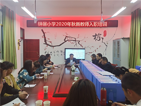 学校校长邓中奎从当前教育发展形势、基础教育课程改革的目标要求和新理念、教师职业道德要求对新教师进行培训,教导处张红组织新教师学习《钟屏希望小学校教学常规、六认真考核制度》、《钟屏希望小学校考勤制度》 ,教导处杨凡向新教师作了《如何做好班主任工作》的主题报告。