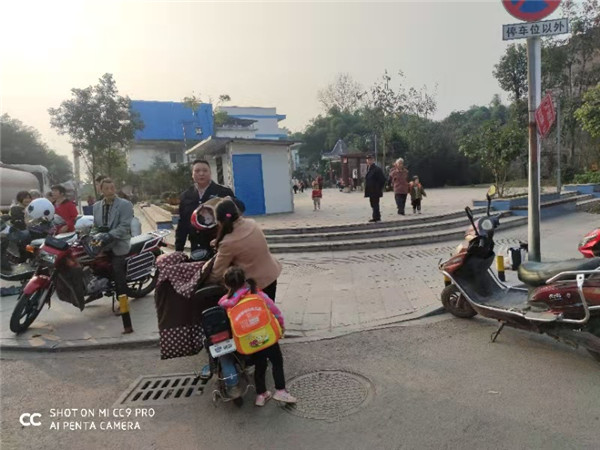 学校通过向全校学生发放交通安全知识宣传单,要求学生带回家中给家长宣讲交通安全常识和交通安全法规,提高家长的交通安全意识,从而进一步对学生起到言传身教的作用。在放学时,认真安排门卫和教师执勤,教师向家长宣传道路安全知识,提醒家长规范行车、乘车。教师在家长微信群里向家长普及和提醒步行安全、骑车开车安全、乘车安全、接送学生安全等,提高家长交通安全意识。