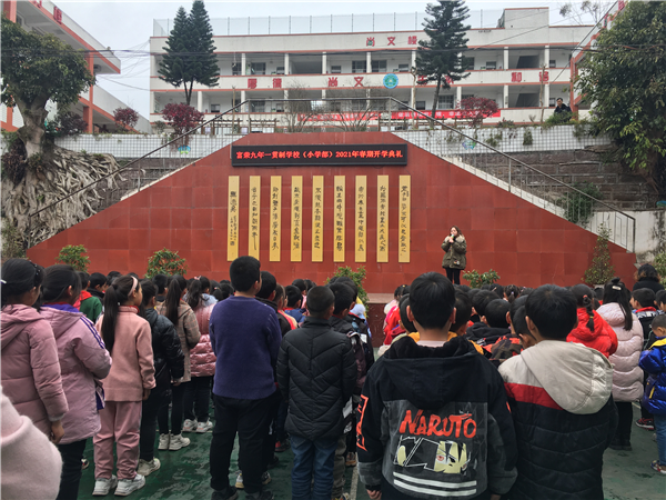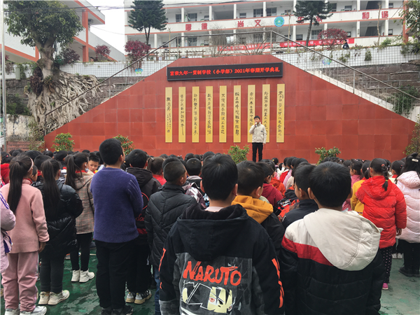 近日,屏山县富荣九年一贯制学校小学部举行了隆重的2021春期开学典礼暨开学第一课。