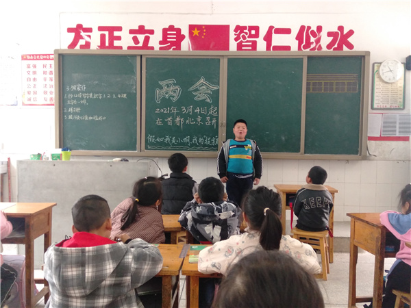 近日,翠屏区方水中心学校师生们依托思政课、班会课以及校园宣传平台,看两会,听两会,学两会,宣两会,掀起关注“两会”热潮。