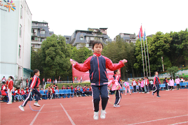 “预备,开始!”一声令下,低年级小朋友一分钟跳绳比赛拉开运动会帷幕,此次运动会突出“趣味”与“合作”主题,精心设计了跳绳、小篮球、丢沙包、障碍赛跑、拔河五个团体项目,这些项目既考验团队合作精神又充分展示个人风采,集娱乐健身于一体。
