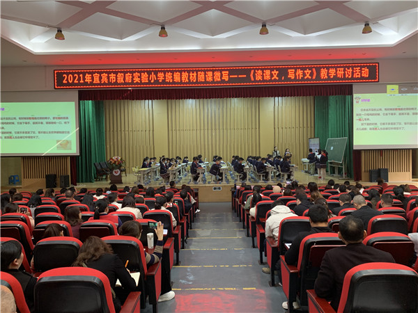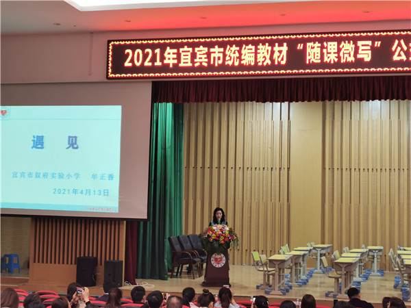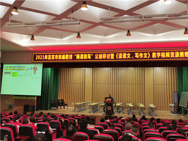 4月13日,统编教材“随课微写”专题公益研讨暨《读课文,写作文》教学视频资源捐赠活动在宜宾市叙府实验小学的学术报告厅举行。此次活动由四川省新创教育研究院、四川省“随课微写”理论与实践策略研究总课题组主办,宜宾市叙府实验小学承办。