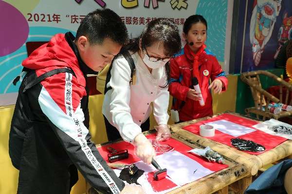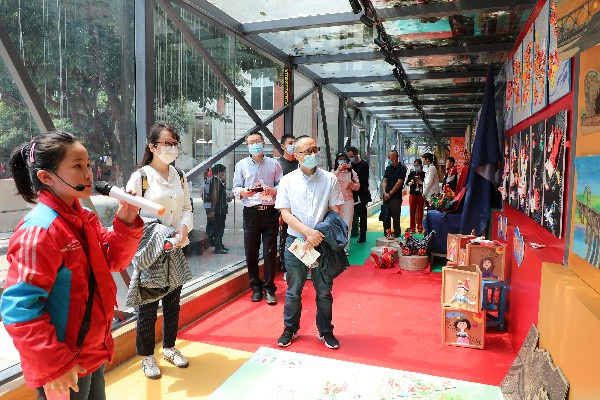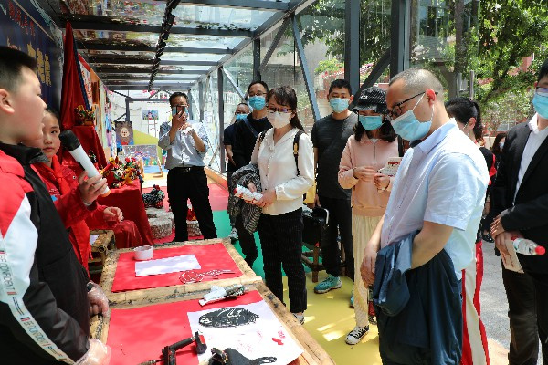 随后,检查团走进中山艺术馆。中山艺术馆是全市第一个,也是目前唯一的校园艺术馆,通过红领巾解说员们的介绍,来宾们对中小版画、布艺、剪纸、油画、泥塑等特色艺术社团打造成果进行深入了解。在小小讲解员的热情邀请下,杨晓虹亲手体验了版画制作,领略版画艺术的魅力。