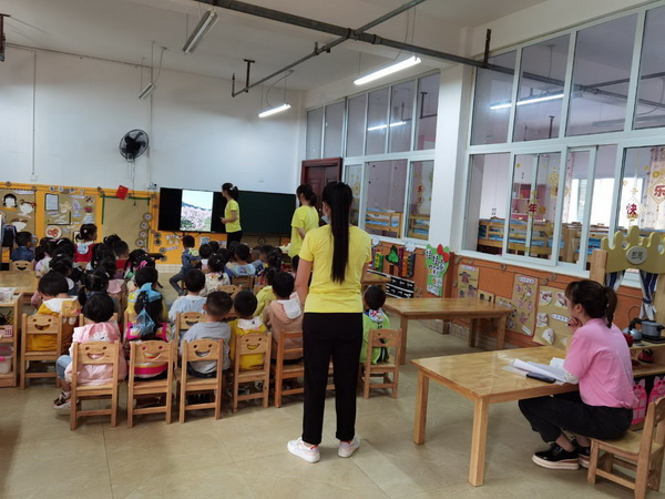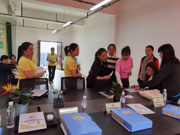 评估组通过现场随机抽签的形式,对照评估细则通过蹲班观摩、查阅档案资料、现场访谈、察看园容园貌、教学设施设备和游戏材料等过程质量、条件质量和结果质量进行了现场评估。