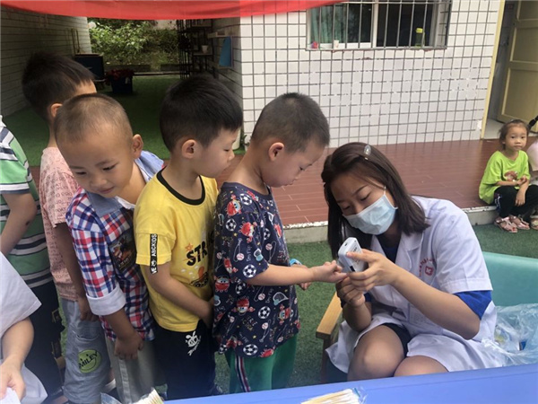 此次体检,阳春镇卫生院保健医生早早来到幼儿园,对幼儿身高、体重、视力、龋齿、血色素等涵盖幼儿生长发育重要指标方面进行了常规检查。体检过程中,保健医生们分工明确,态度和蔼可亲;教师们积极配合,带领孩子们依次进行各项检查;使得整个体检过程井然有序,顺利完成了幼儿的体检工作。