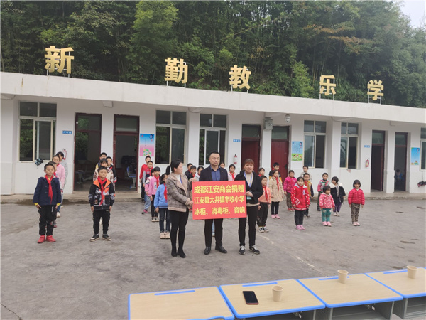 10月29日,四川江安商会、江安县成都流动党委、江安县驻成都市农民工服务中心的爱心人士来到大井镇丰收小学进行爱心捐赠。