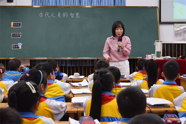 冬日暖阳照耀甜城内江,笼罩在五星小学上的薄雾,氤氲着润泽,在这里绘出2021年末群文阅读最美的画卷。杨厚林执教的《古代儿童的智慧》群文阅读课在川南联片教研活动中亮相,获得了省教育科学研究院义教所副所长刘晓军高度赞赏,刘晓军从“议题统领、均衡文本,教学结构完整,“古为今用”设计锐意创新,小结提升知行含金量”四个方面对杨厚林这堂课褒奖连连,与会老师更是被杨厚林与学生谈话般的课堂语言深深吸引,由衷地赞叹:“杨老师太会引导了,二年级的娃娃能把文章读懂到这个程度,真是出人意料。”