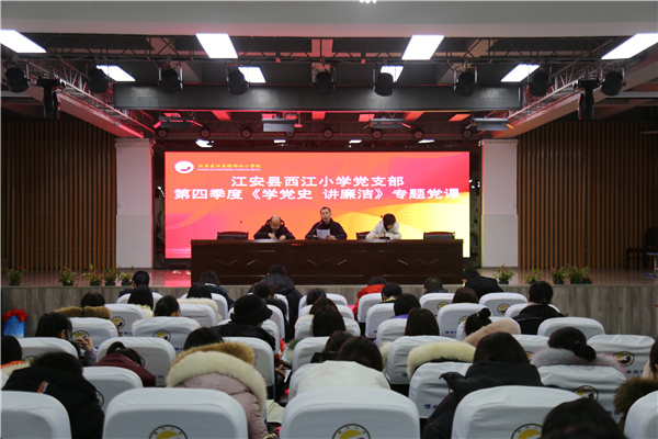 12月28日,江安县西江小学举行“学党史 讲廉洁”主题党日活动。学校党支部书记、校长钟益春进行了《学党史 讲廉洁》主题党课宣讲。