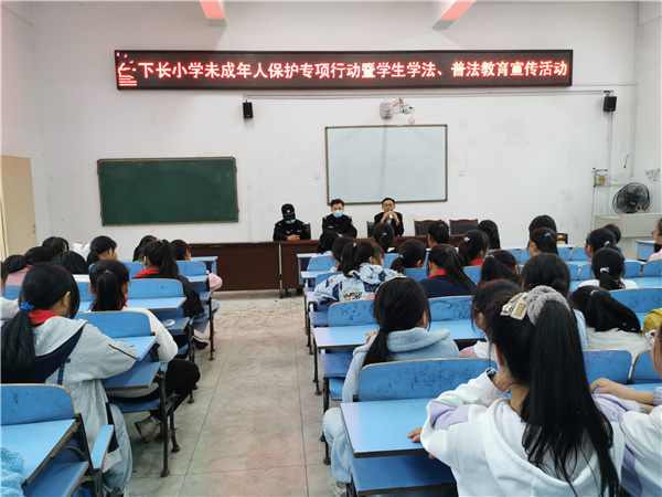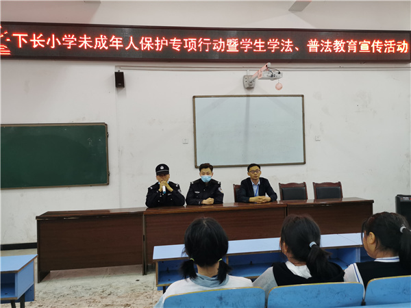 为了提高未成年儿童法律意识、自我保护意识,4月14日,江安县下长镇派出所2名工作人员到下长镇中心小学校开展了“下长小学未成年人保护专项行动暨学生学法、普法教育宣传活动”,共有210名师生参加活动。