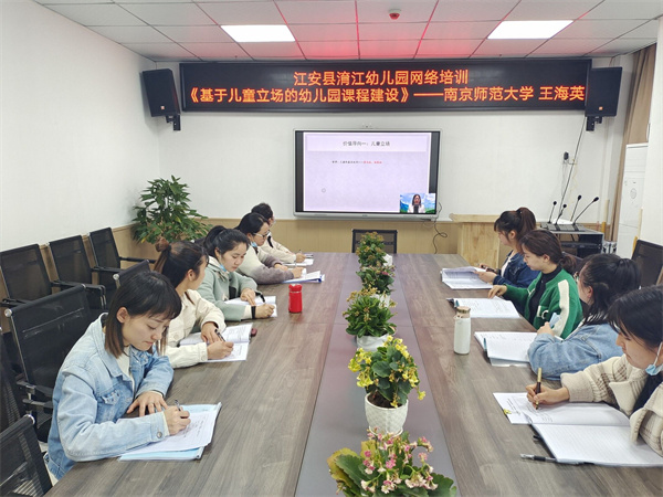 为进一步贯彻《幼儿园工作规程》《3-6岁儿童学习发展指南》精神,提升幼儿园教师素质和保教工作质量,4月19日,江安县淯江幼儿园幼儿园开展了第三学月集中网络培训活动,学习内容为南京师范大学教授王海英主讲的“基于儿童立场的幼儿园课程建设”,全园教师参加了培训。