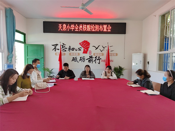 天泉小学为了筑牢疫情防控墙,落实疫情常态化核酸抽测工作,保护校园师生安全,4月19日,江安县四面山镇天泉小学校统筹规划组织了全体师生员工进行核酸检测布置会。