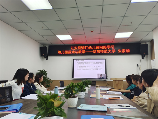 4月21日,江安县淯江幼儿园组织全体教师通过网络直播课堂进行集中培训学习,学习主题为“幼儿园教学淯游戏”。