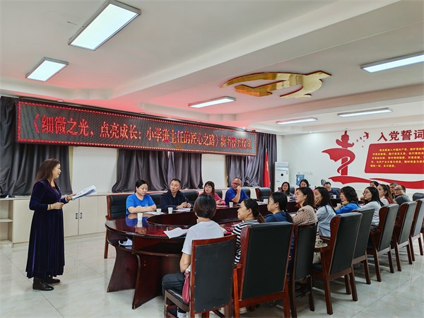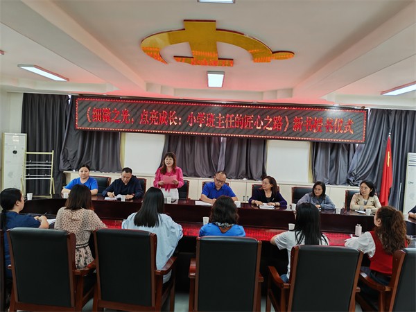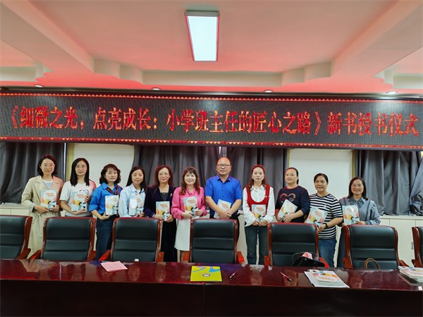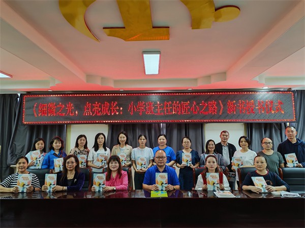 9月30日下午,宜宾市南溪区张晓林班主任名师工作室《细微之光,点亮成长:小学班主任的匠心之路》新书授书仪式在宜宾市南溪区钟灵街小学校三楼会议室温情启幕。本次活动以“传承教育经验、赋能教师成长”为核心,由工作室成员陈小燕老师主持,第一届工作室全体成员、本书编委及钟灵街小学党支部书记、校长刘小兰等齐聚一堂,共赴这场教育智慧的分享盛会。
