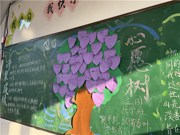 各班教室里,一棵棵心愿树悄然生长。同学们提笔写下纯真愿望,将美好期许系上枝头。“新学期,我希望自己更加勇敢,我的计划是参加学校‘梦想家部落’展示……”“新年我希望自己的成绩提高,我的目标是……”小小心愿,承载着努力与向往,在阳光下闪闪发光。愿每颗心愿都能生根发芽,在岁月中绽放属于自己的精彩。