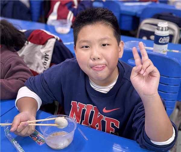 活动伊始,几位家长志愿者化身“美食老师”,手把手教孩子们制作汤圆。揉粉、搓球、包馅,孩子们的小手忙得不亦乐乎。当热气腾腾的汤圆端上桌,孩子们小心翼翼地吹着气,轻轻咬上一口,软糯的外皮和香甜的馅料在嘴里化开,脸上都漾起了满足的笑容。