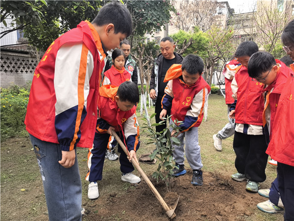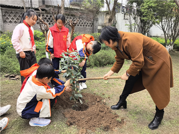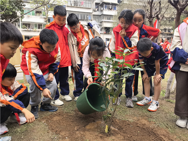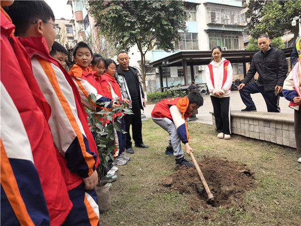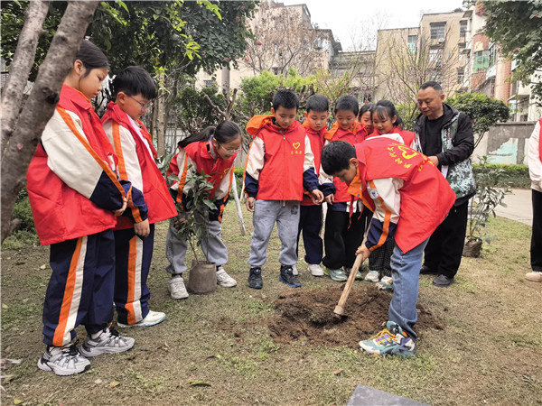 春风催新绿,植树正当时。3月11日,宜宾市南溪区钟灵街小学校组织少先队员们走进社区,开展了以“植绿于心 护绿于行”为主题的植树节实践活动,用实际行动为家园添绿,践行生态文明理念。